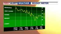 By later Wednesday and Thursday, drier air and building high pressure will bring relief from the oppressive humidity. Although an upper-level trough will remain over the Northeast and Mid-Atlantic, deeper moisture should be limited, keeping any additional showers isolated. Highs will be in the mid to upper 80s with more comfortable conditions.