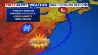 The forecast turns much more favorable as high pressure settles over the region heading into Friday and the Fourth of July weekend. Temperatures will hold in the mid to upper 80s during the day, with dew points dipping into the low to mid-60s, delivering comfortable summer weather to close out the week.