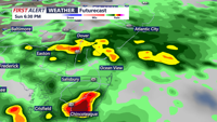 As Sunday night progresses, showers and isolated storms taper off, especially after midnight. Lows will drop into the low 60s, with mostly cloudy skies continuing.