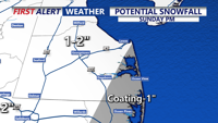 In Sussex county, a light accumulation is expected, with around a half-inch to 1.5 inches expected with some locations seeing close to 2 inches. Rain could hold down accumulation amounts in some areas.Â