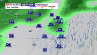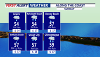 DELMARVA- A cloudier end to the weekend with Sunday showers, then a coastal low brings a cold rain and wind on Tuesday with a Yellow Alert.