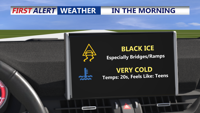 Out the door watch for slick spots on the sidewalk and roads. Black ice is possible early on, especially on bridge decks and exit ramps. Temperatures start out in the low to mid 20s, but feeling like teens. For the rest of MLK Day, lots of sunshine and temperatures in the 30s to near 40.