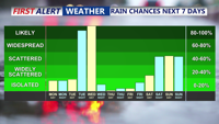 Overnight lows will remain mild, settling in the mid to upper 50s. A few patches of fog may form, but increasing cloud cover and a light breeze should prevent it from becoming widespread.