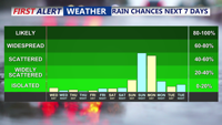 Staying dry through the weekend, rain changes return overnight Sunday-Monday.