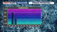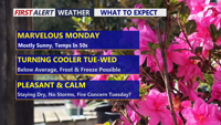 Freeze concerns as we go into Tuesday night, temperatures dipping below the freezing mark.