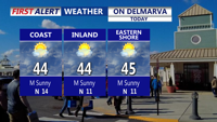DELMARVA -- High pressure settles over Delmarva today, allowing for a brief stretch of tranquil weather before a more active pattern returns. Skies remain mostly clear through the daytime hours, with highs in the mid-40s and diminishing northwest winds as the high moves overhead. Winds will gust to 20 mph at times. High clouds may increase late in the day ahead of the next incoming system.