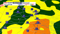Rainfall totals between 0.75 and 1.25 inches are expected, and Georgetown could approach its daily rainfall record of 1.11 inches set in 1974.