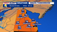 Conditions will remain mostly sunny with calm winds. Inland temperatures will climb to the upper 70s, while the coast sees highs in the low to mid-70s. Little to no precipitation is expected during the morning hours.