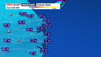 Rainfall totals late tonight - Sunday morning, 0.50"-1.25".