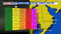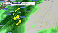 There is a slight chance for severe weather Sunday evening into Monday morning. There could be heavy rain and gusty winds accompanying the front. Isolated damaging winds are possible with some storms. Over an inch of rain is possible with this system.