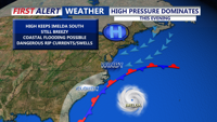 This evening it remains breezy, even windy at the beaches with gusts to 30 mph at times. The high rip current risk is expected to last through the end of the week. Coastal Flood Advisories are up until 8PM for the DE coast, could see up to a foot of inundation during the high tide cycle through this evening.Â