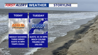 DELMARVA --A fast-moving storm system will bring a brief period of mild temperatures and scattered rain to Delmarva today before a sharp drop in temperatures and strong winds arrive later this afternoon and evening.