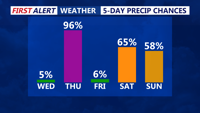By Friday, high pressure will briefly settle in, bringing a drier and breezy day. Skies will begin to clear, though a reinforcing dry cold front will push through, ushering in gusts of 20 to 30 mph by midday. While Friday will feel brisk, temperatures are expected to reach the low to mid-40s inland and could climb to the low 50s in southern Sussex County.